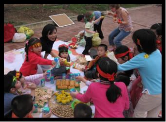 Nhưng các bạn biết không? Nhiều bạn nhỏ vẫn còn nhầm, gọi khoai lang là khoai tây, gọi củ lạc là đậu Hà Lan đấy! Trước khi ăn, các bạn còn không quên “cụng sữa”: “1,2,3 dzô...” “1,2,3 dzô...” Mời các bạn liên hoan!!!